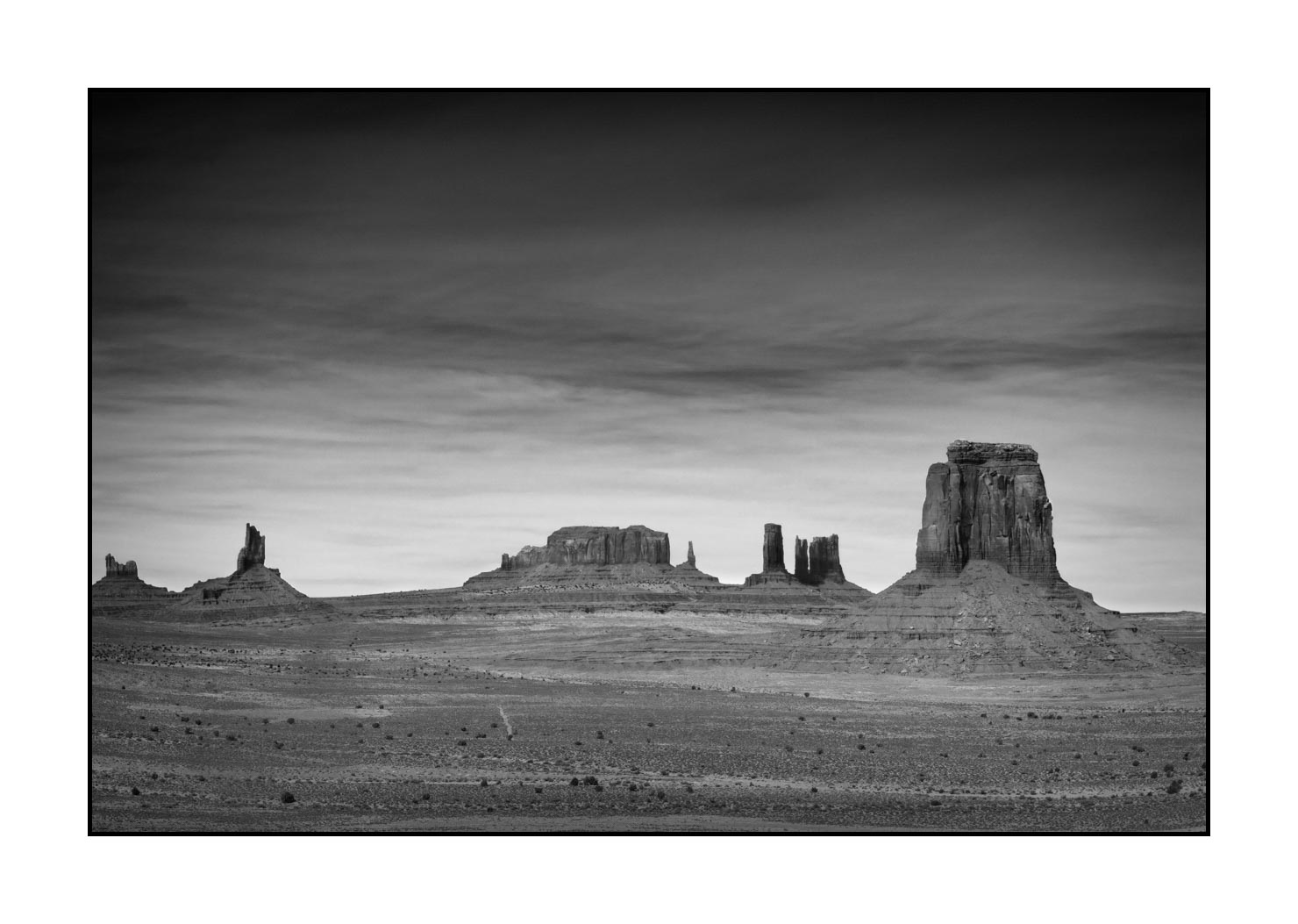 Landscape of Monument Valley in Black and White XIII: Museum Finish Dim in inches - Photo: 15 x 10. With frame: 16.2 x 11.2. / Dim in cm - Photo: 38 x 25.4. With frame: 41.5 x 28.5.