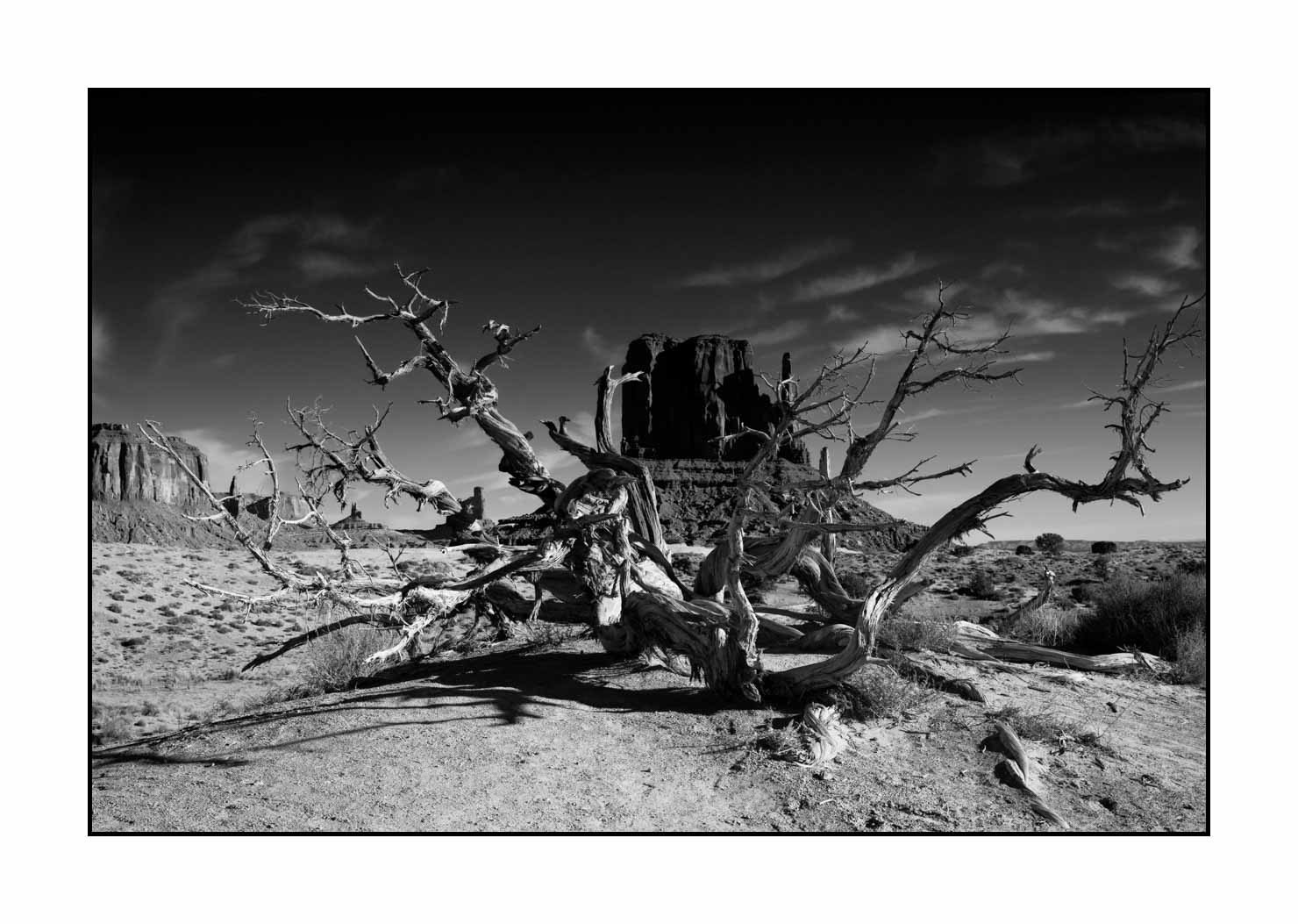 Landscape of Monument Valley in Black and White IX: Museum Finish Dim in inches - Photo: 12 x 8. With frame: 17.1 x 13.1. / Dim in cm - Photo: 31 x 20. With frame: 43.5 x 33.5.