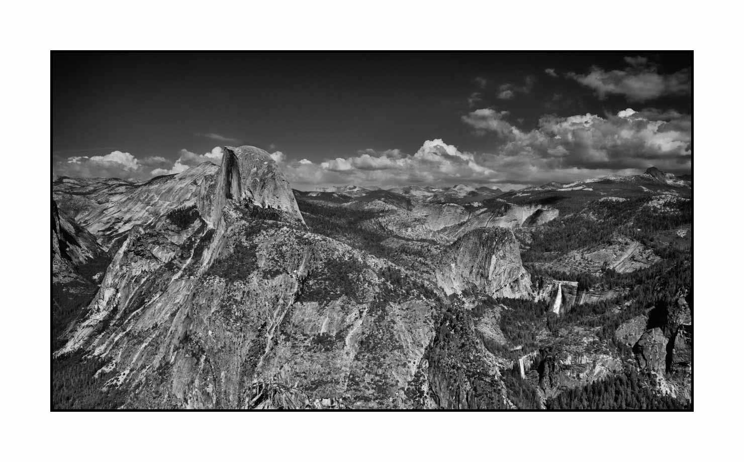 Landscape of Yosemite National Park in California III. View on Half Dome.: Museum Finish Dim in inches - Photo: 34 x 19. With frame: 41.1 x 26.1. / Dim in cm. Photo: 86 x 48. With frame: 104.5 x 66.5.