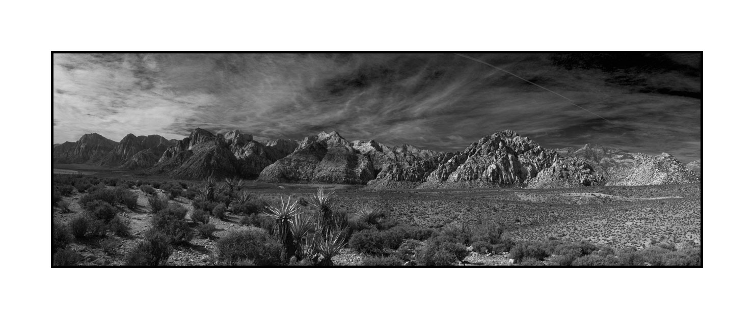 Landscape in Black and White of Red Rock Canyon in Nevada I: Museum Finish Dim in inches - Photo: 36 x 12. With frame: 41.1 x 17.1. / Dim in cm - Photo: 91.4 x 30.5. With frame: 104.5 x 43.5.