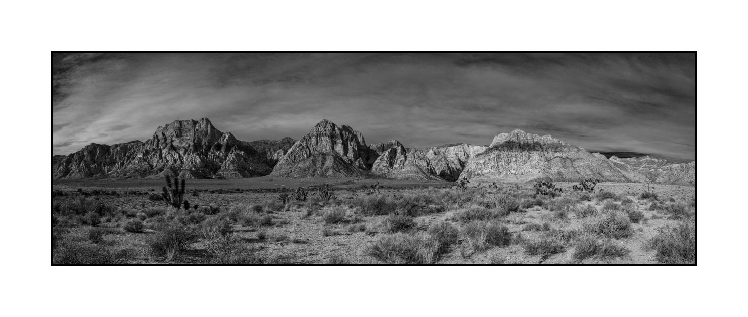 Landscape in Black and White of Red Rock Canyon in Nevada VIII: Museum Finish Dim in inches - Photo: 36 x 12. With frame: 41.1 x 17.1. / Dim in cm - Photo: 91.4 x 30.5. With frame: 104.5 x 43.5.