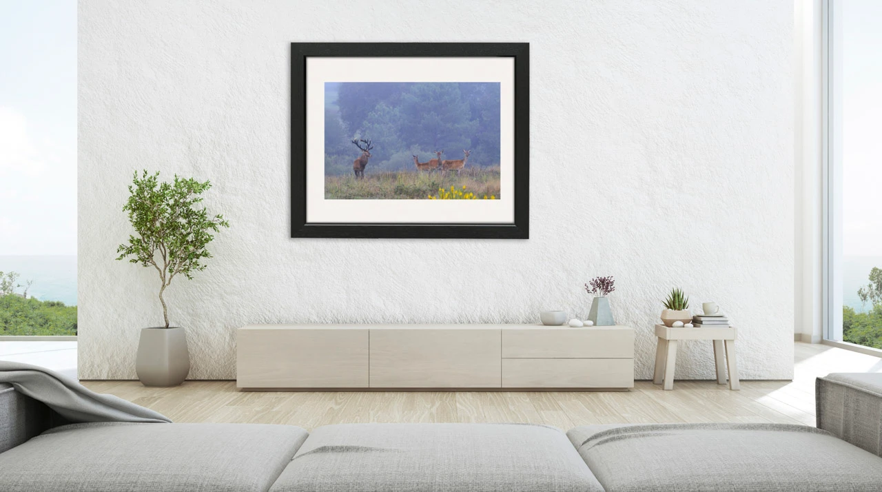 Majesty and Grace of the Rutting Stag: Museum Finish Dim in inches - Photo: 15 x 10. With frame: 16.2 x 11.2. / Dim in cm - Photo: 38 x 25.4. With frame: 41.5 x 28.5.