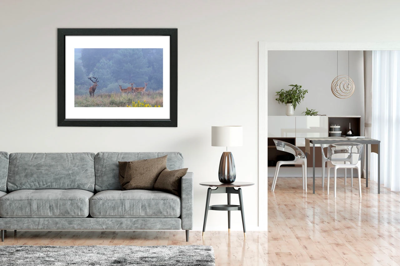Majesty and Grace of the Rutting Stag: Contemporary Finish Dim in inches - Photo: 24 x 16. With frame: 25.2 x 17.2. / Dim in Cm - Photo: 61 x 41. With frame: 64 x 44.