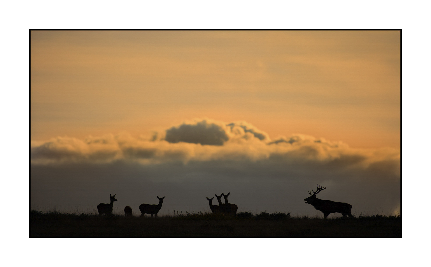 The eyes of the animal are not visible in a silhouette photograph. This fact accentuates themes of mystery in the scene. The look is implied but not visible. The shape of the body is important. It becomes suggestive. Everything is carried through the movement and attitude of the animal.