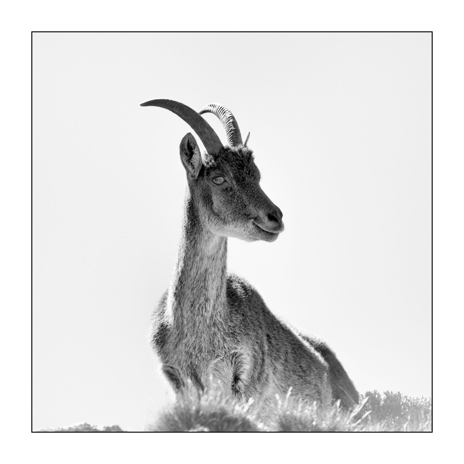 I chose to create this collection of artistic photographs in black and white and in high key (where strong lights are very accentuated) in order to pay homage to the grace and the elegance of this magnificent animal. The Walia Ibex performs with such agility when climbing the steep walls of the Simien mountains.