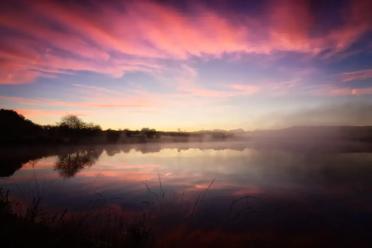 his land of Charente-Maritime does not seek to impress. It does not overwhelm with dramatic peaks or restless seas. It whispers. At dawn, when the mist rises gently from the ponds and the first light brushes the horizon, I enter a suspended world. The water becomes a mirror without edges. The trees dissolve into silhouettes. The sky unfolds in delicate shades of blue, violet, gold, and fire. Everything is quiet. Everything breathes.