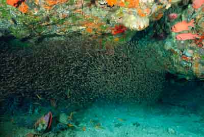 Fishermen and discrete Yemeni traders who live in smaller trades using these arid and volcanic islands as a stage in their passage through the Strait of Bab-el-Mandeb, which lasts about 40 minutes to their feluccas powerful engine. The Strait of Bab-el-Mandeb literally "Gate of Wailing, 29 km wide and 130 m deep, is a turbulent area. System against the current two layers predominates: the surface water rushes into the Red Sea, while below water with high rate of salt drains. The underwater fauna is represented by coral reefs, a variety of nudibranches, fish typically found in the Red Sea and Indian Ocean, a few gray reef sharks, sharks and sleeping white tip sharks.