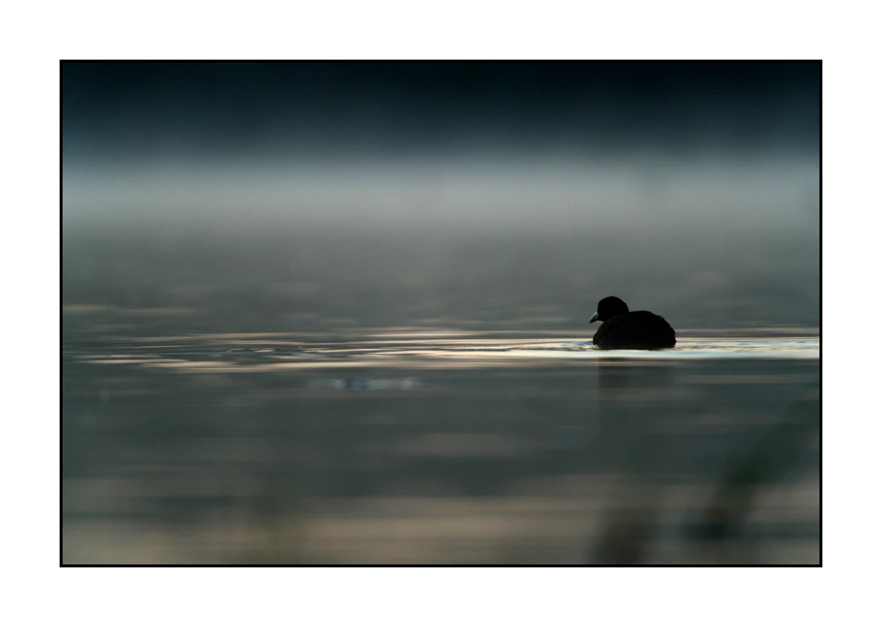 Lorsque j'ai créé cette photo d'un oiseau dans la Dombes en France, j'ai souhaité évoquer un doux dialogue entre immobilité et liberté, où l'harmonie paisible de la nature rencontre le mouvement gracieux de la faune sauvage.