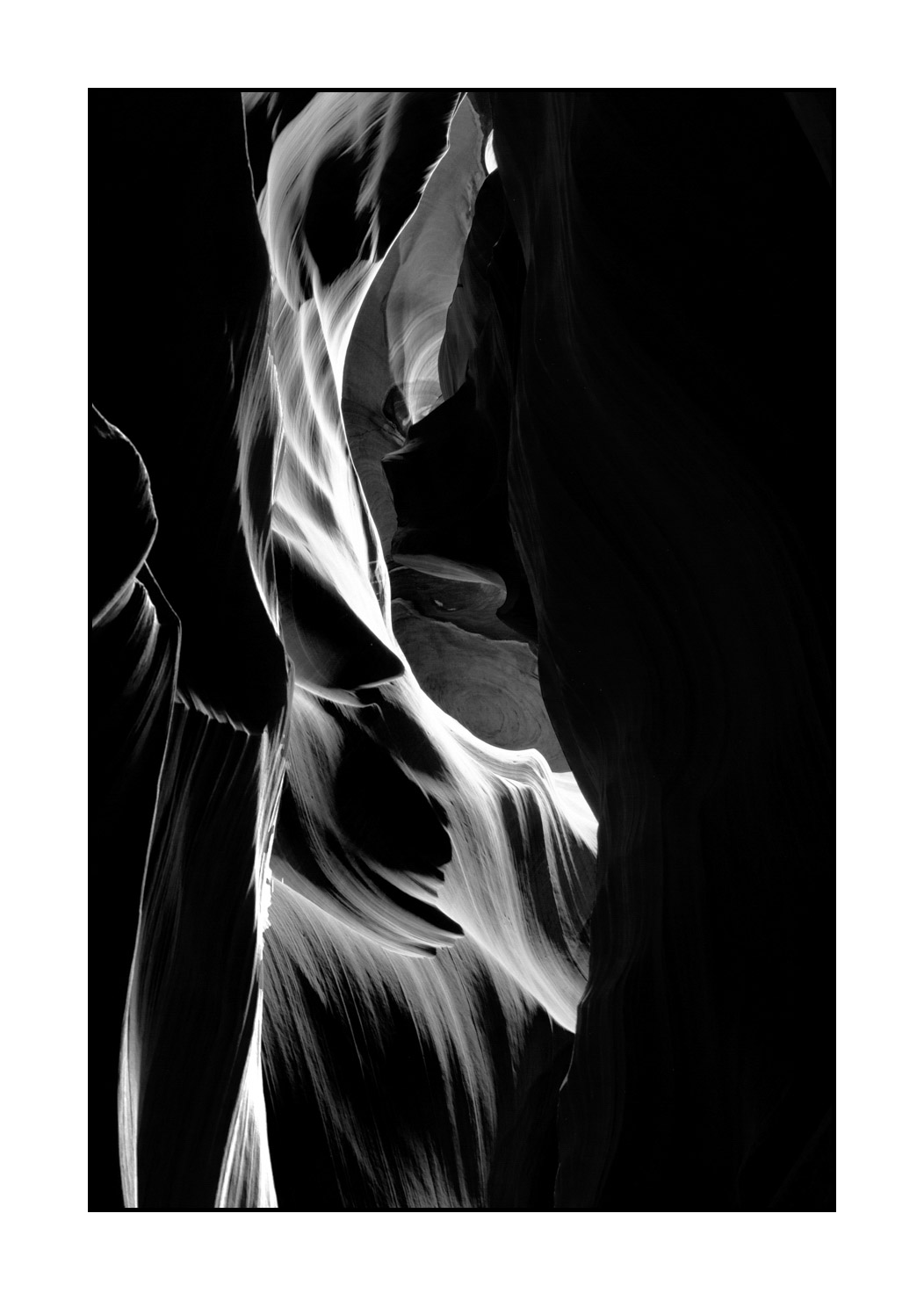 Paysage en noir et blanc de Antelope Canyon I: Finition museum Photo : 60cm x 40cm. Avec cadre : 73cm x 53cm.