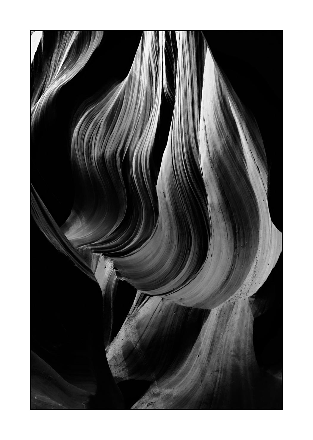 Paysage en noir et blanc de Antelope Canyon II: Finition museum Photo : 30cm x 20cm. Avec cadre : 41cm x 31cm.