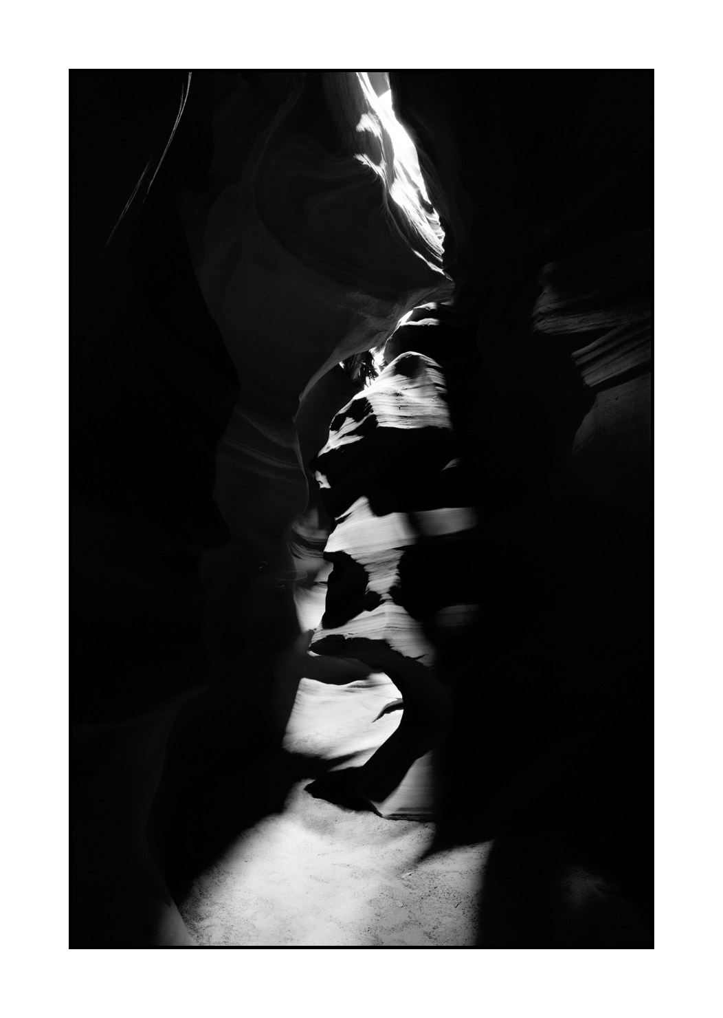 Paysage en noir et blanc de Antelope Canyon V: Finition museum Photo : 60cm x 40cm. Avec cadre : 73cm x 53cm.