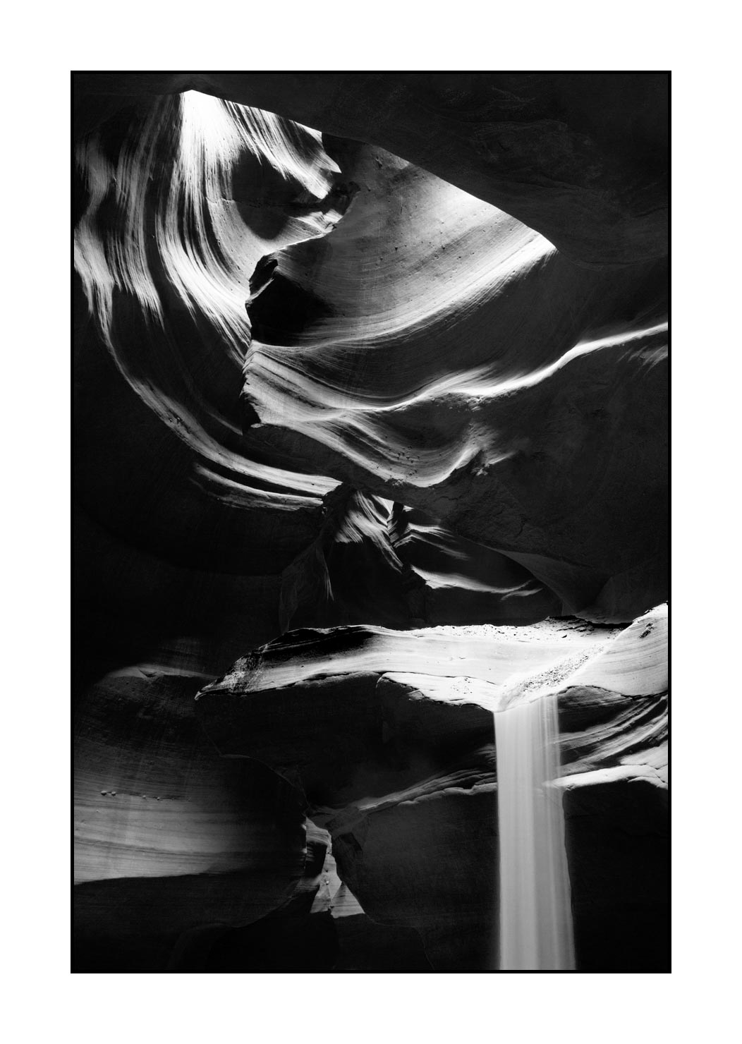 Paysage en noir et blanc de Antelope Canyon VI: Finition museum Photo : 60cm x 40cm. Avec cadre : 63cm x 43cm.