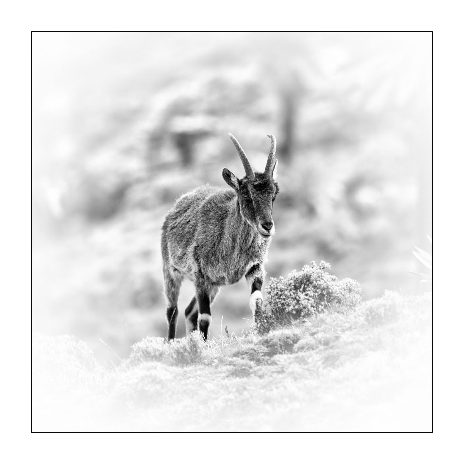 Bouquetin d'Abyssinie IV: Finition museum Photo : 30cm x 30cm. Avec cadre : 41cm x 41cm.
