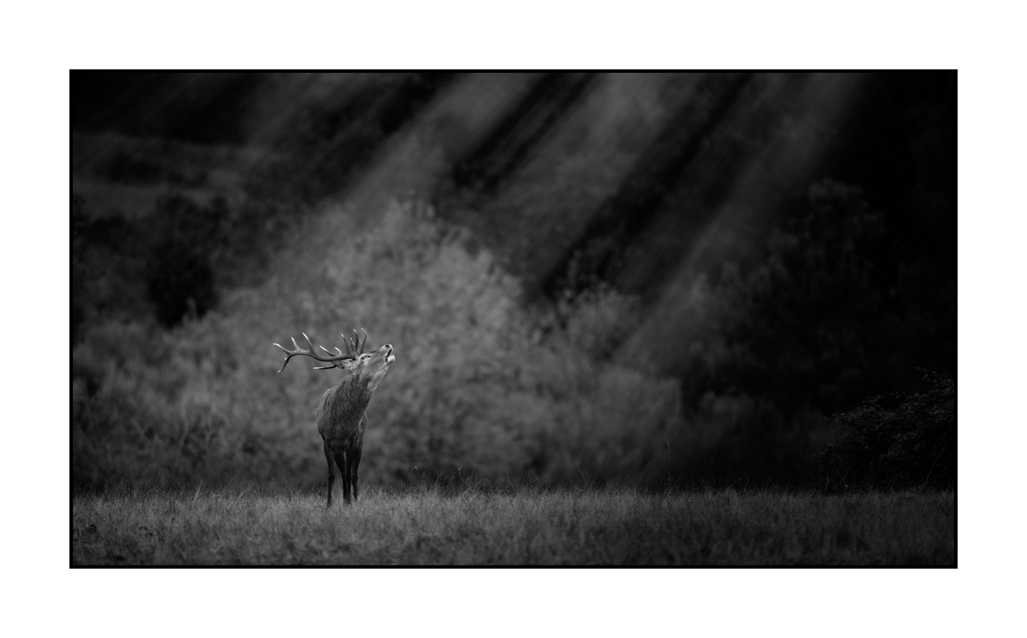 Brame du cerf III: Finition museum Photo : 37cm x 21cm. Avec cadre : 48cm x 32cm.