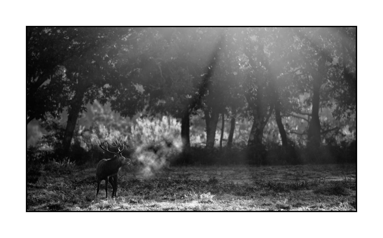 Brame du cerf VII: Finition museum Photo : 37cm x 21cm. Avec cadre : 48cm x 32cm.
