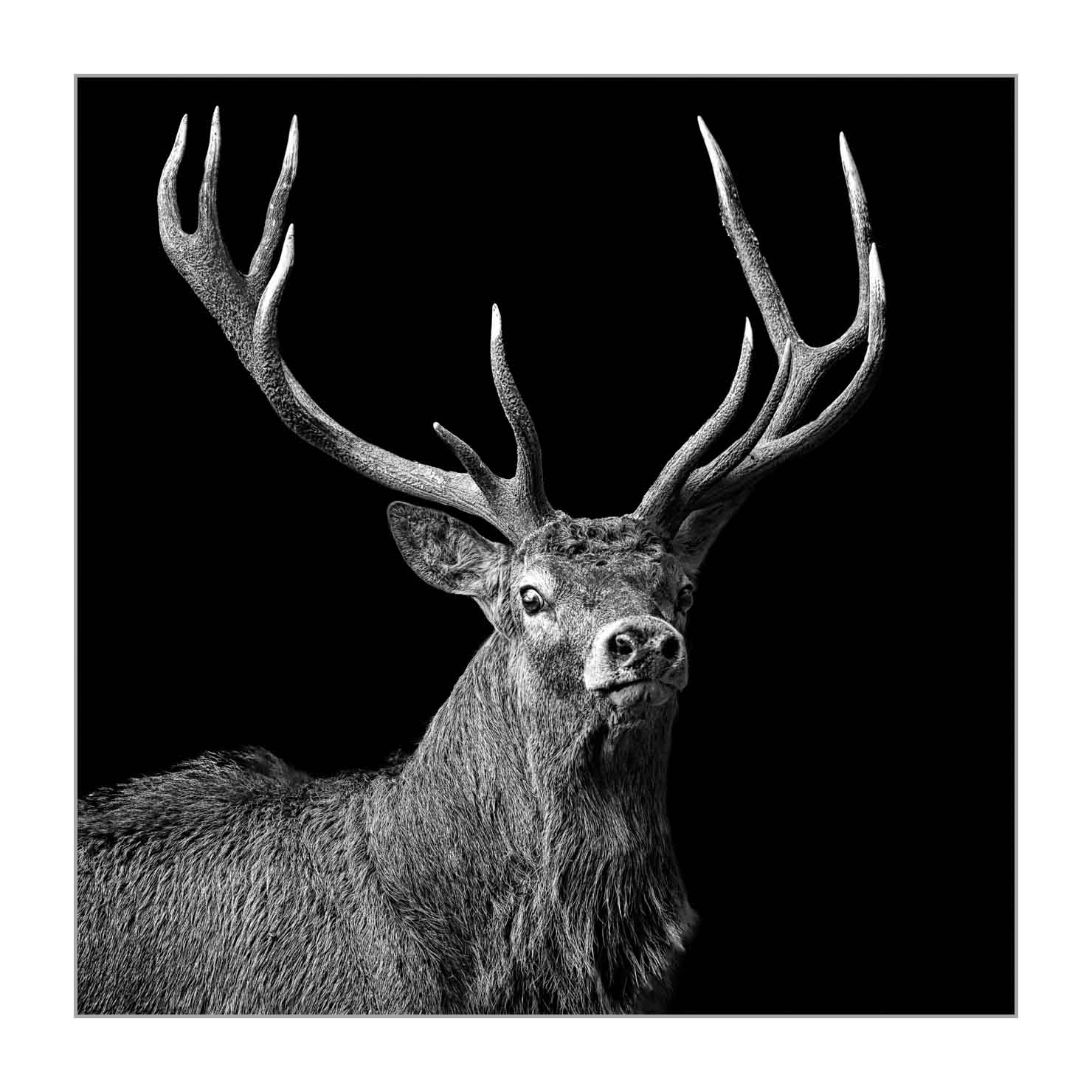 Cerf élaphe en back to black II: Finition museum Photo : 20cm x 20cm. Avec cadre : 33cm x 33cm.