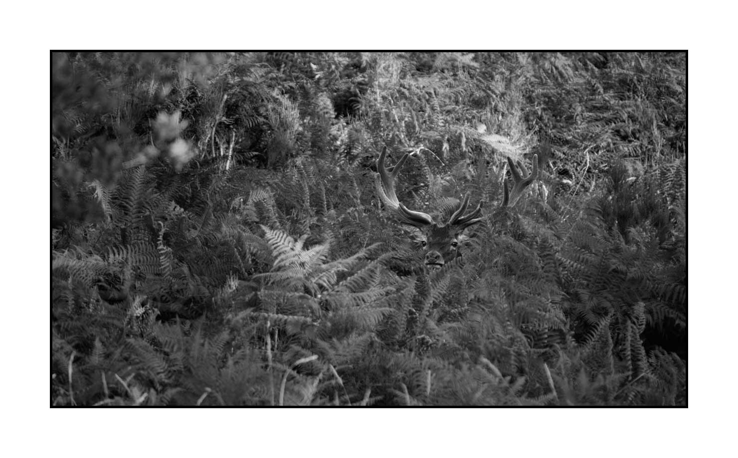Une année, alors que j’étais dans un affût en train de guetter le passage d’une biche et de son faon dans la forêt de la Coubre en Charente-Maritime, un cerf de près de 200 kilogrammes, s’est approché nonchalamment de moi. Il ne m’avait pas senti car j’étais à bon vent. Il ne me voyait pas car j’étais couché sous un filet dans une champ de fougères. Il était impressionnant de puissance. Il était paré de son beau pelage roux de printemps. Il portait 16 corps. J’étais totalement subjugué par sa présence, son attitude hautaine et sa majesté.