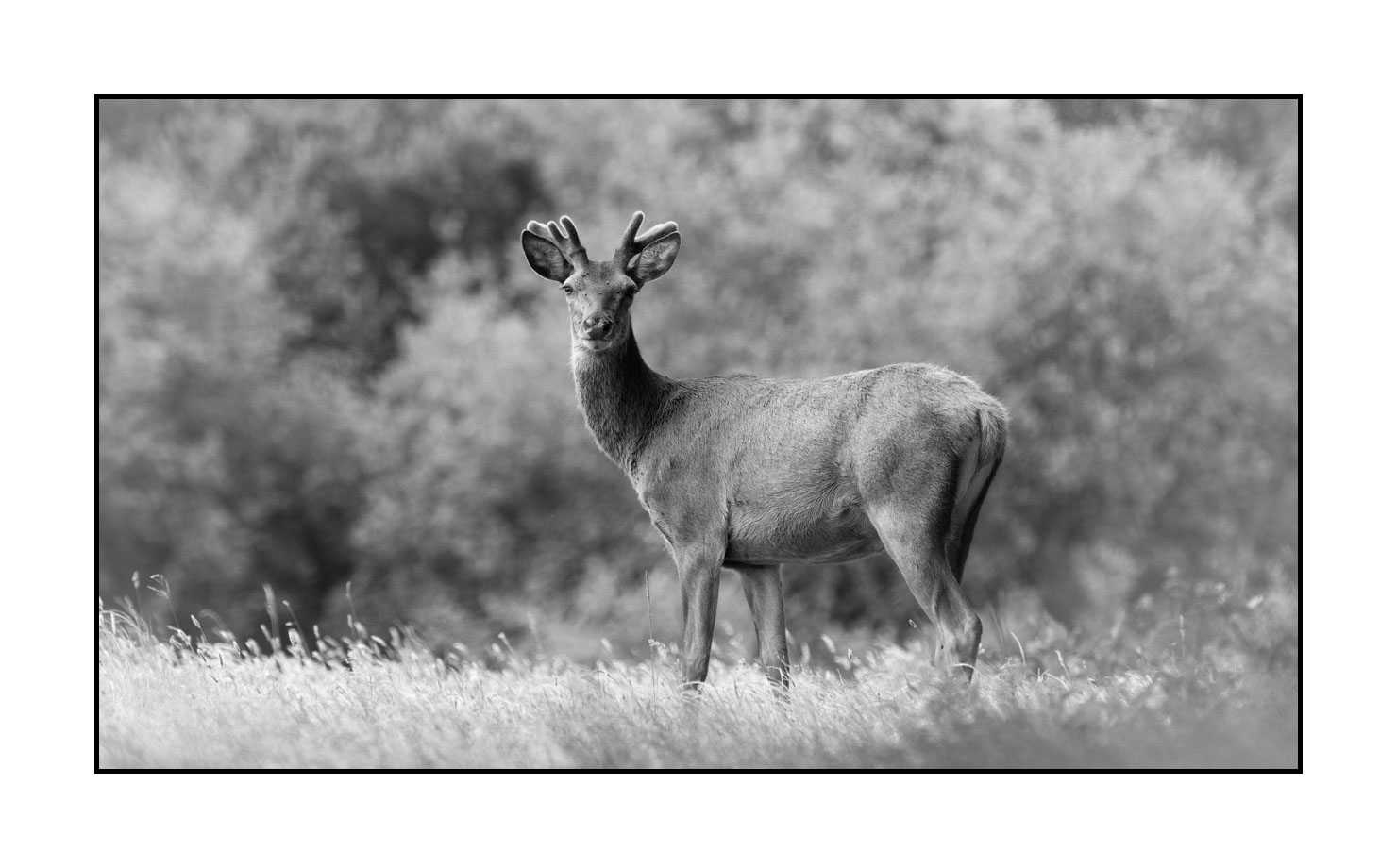 Cerf en bois de velours VII: Finition museum Photo : 48cm x 27cm. Avec cadre : 61cm x 40cm.