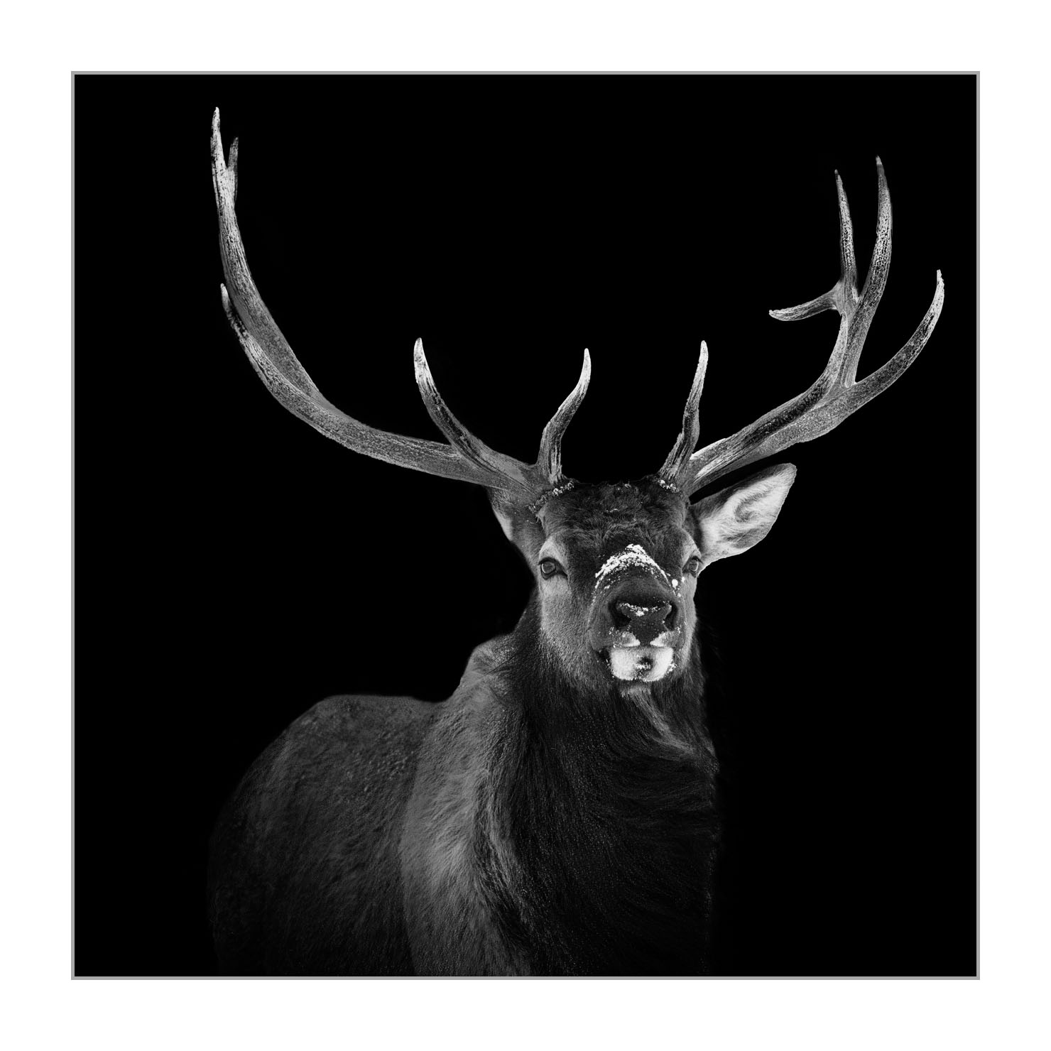 Cerf wapiti en back to black II: Finition museum Photo : 20cm x 20cm. Avec cadre : 33cm x 33cm.
