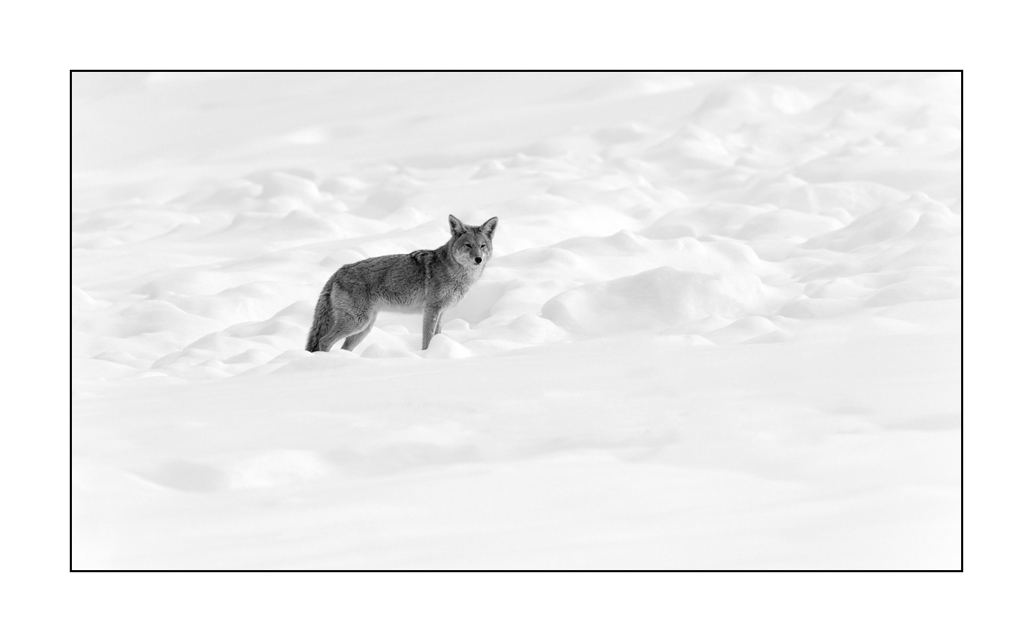 Coyote au Yellowstone III: Finition museum Photo : 48cm x 27cm. Avec cadre : 51cm x 30cm.