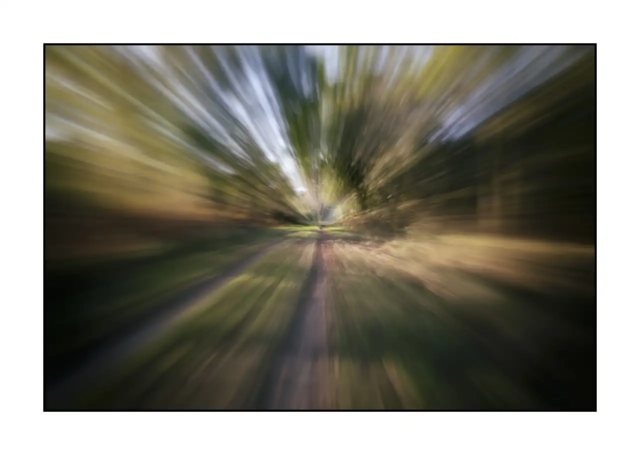 Fuite vers l'invisible II - Interprétation artistique et créative de sous-bois en couleur: Finition museum Photo : 30cm x 20cm. Avec cadre : 33cm x 23,5cm.