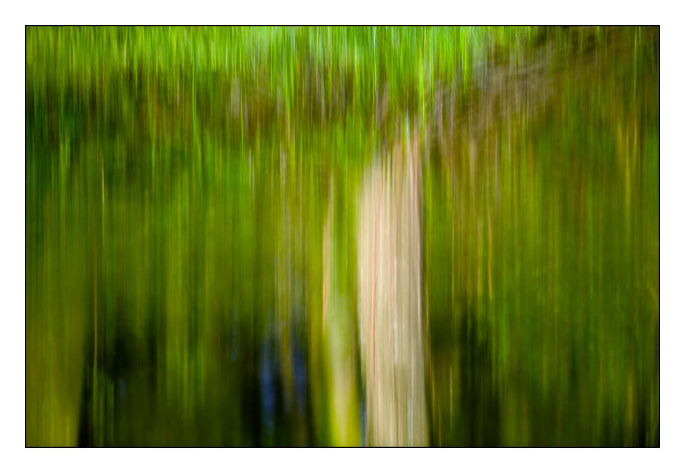 Toutes ces photographies artistiques ont été créées à partir de reflets d’arbres à la surface de l’eau. L’arbre symbolise l’enracinement, la stabilité, l’ancrage. Devenu flou, il reste malgré tout omniprésent. On le devine, l’aperçoit. Troncs et feuillages sont à la surface de l’eau, reflets d’eux-mêmes en couleur. L’image reflétée sur l’eau se déforme, dans un reflet lisse, sans aspérité. L’illusion se nourrit et tire sa force du flou.