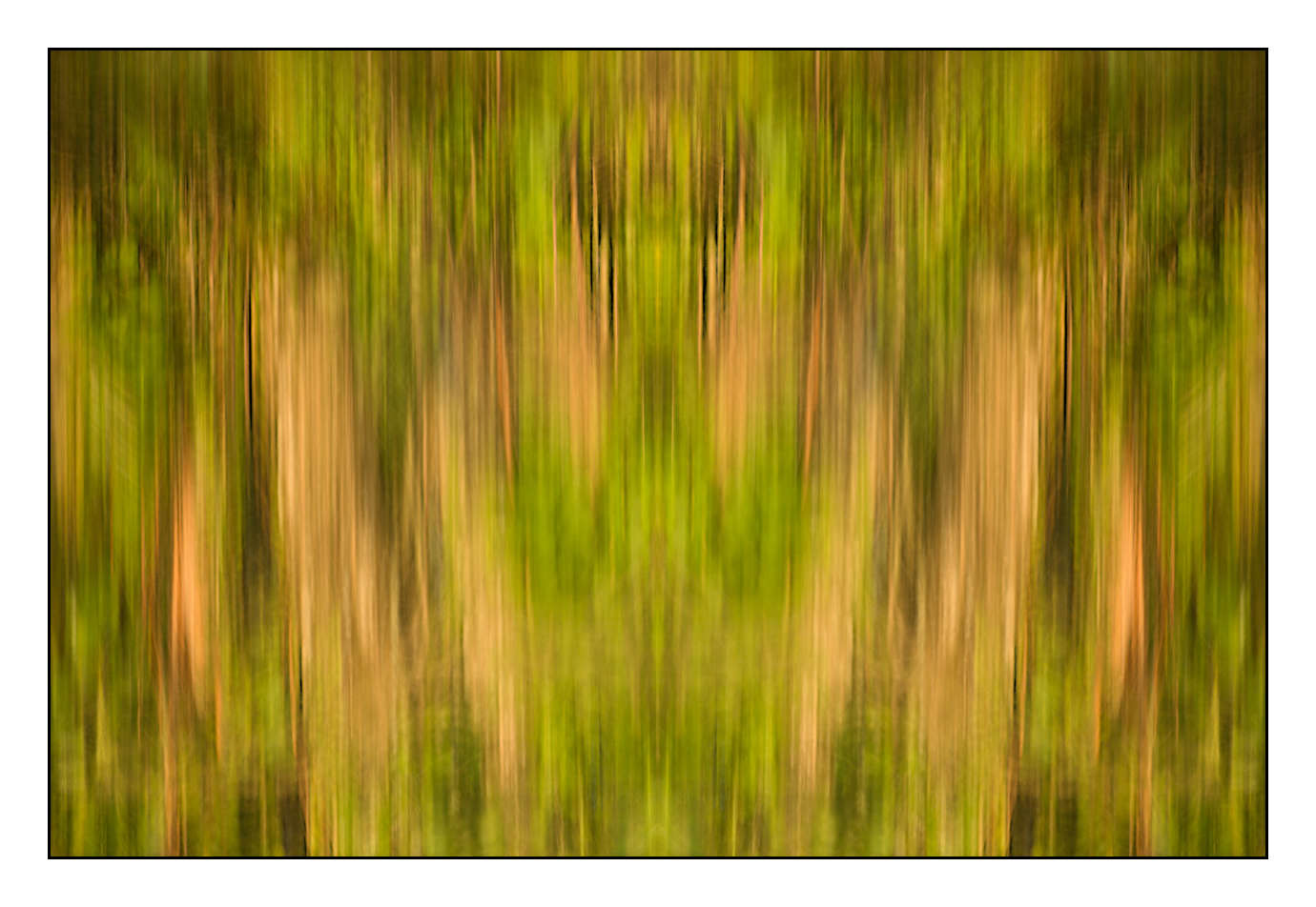 Toutes ces photographies artistiques ont été créées à partir de reflets d’arbres à la surface de l’eau. L’arbre symbolise l’enracinement, la stabilité, l’ancrage. Devenu flou, il reste malgré tout omniprésent. On le devine, l’aperçoit. Troncs et feuillages sont à la surface de l’eau, reflets d’eux-mêmes en couleur. L’image reflétée sur l’eau se déforme, dans un reflet lisse, sans aspérité. L’illusion se nourrit et tire sa force du flou.