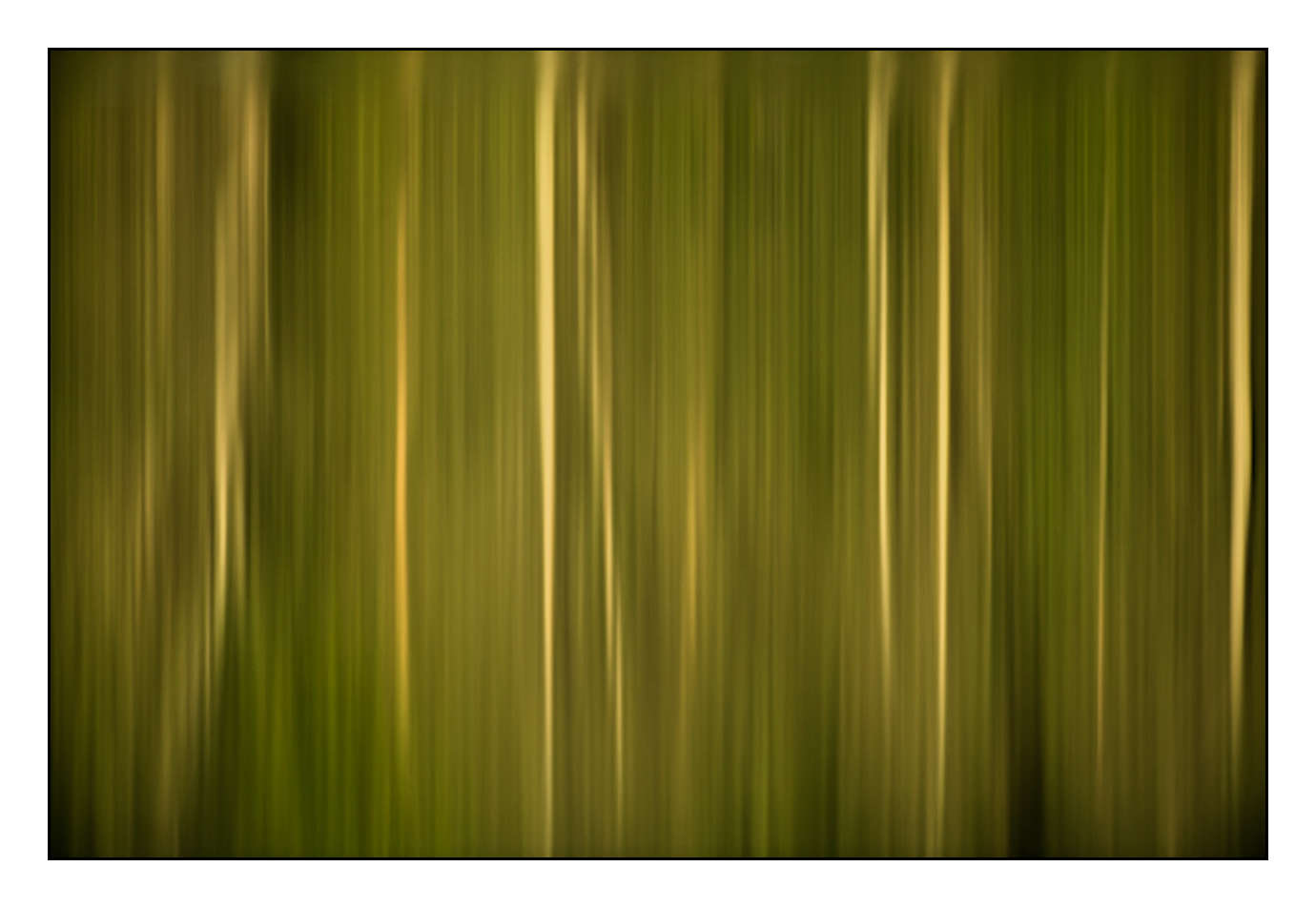 Toutes ces photographies artistiques ont été créées à partir de reflets d’arbres à la surface de l’eau. L’arbre symbolise l’enracinement, la stabilité, l’ancrage. Devenu flou, il reste malgré tout omniprésent. On le devine, l’aperçoit. Troncs et feuillages sont à la surface de l’eau, reflets d’eux-mêmes en couleur. L’image reflétée sur l’eau se déforme, dans un reflet lisse, sans aspérité. L’illusion se nourrit et tire sa force du flou.
