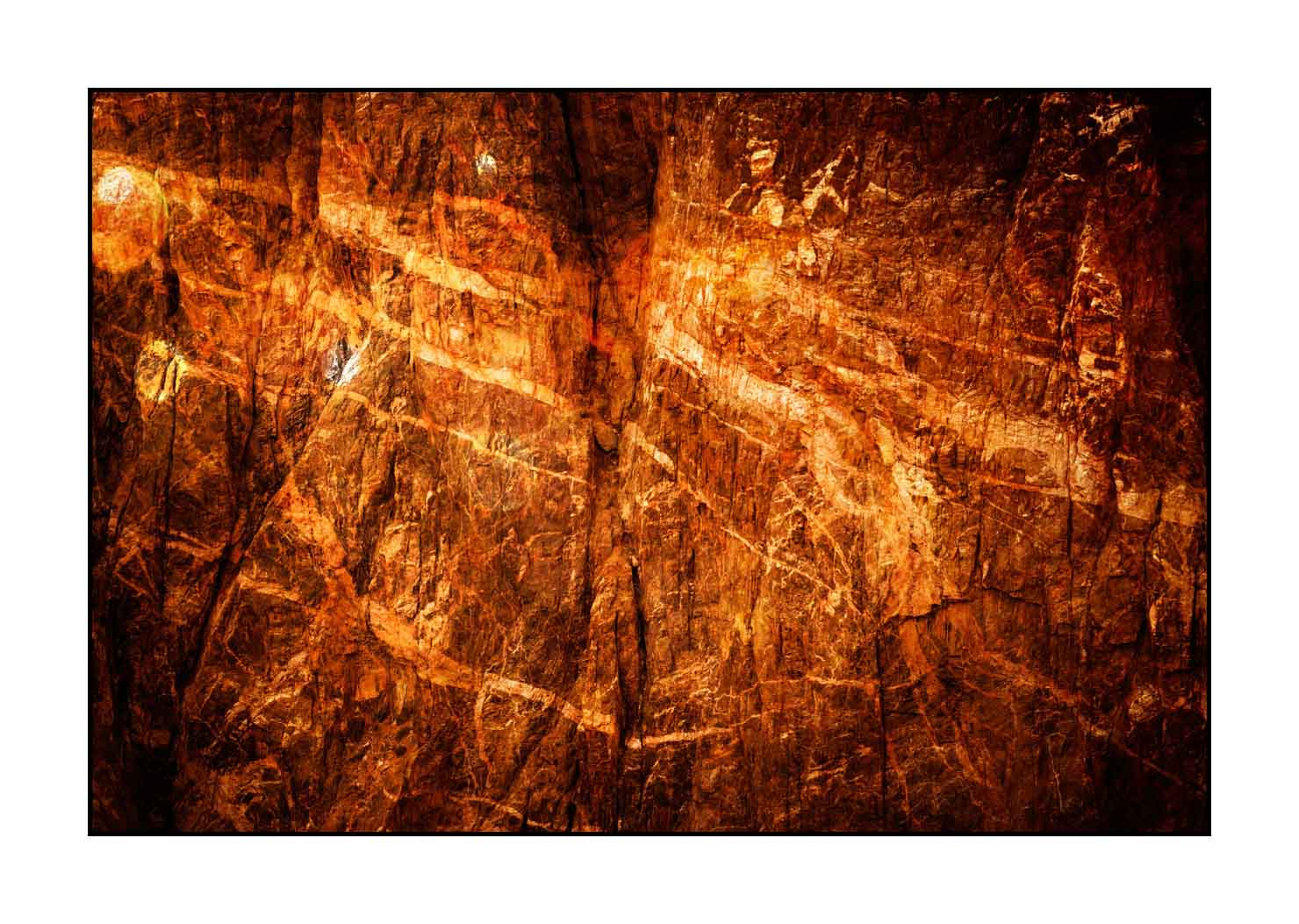Lorsque j’arrivais sur le lieu, je découvris une immense façade rocheuse couverte de stries qui ressemblaient à d’immenses cicatrices. Elle était aussi constellée de tâches et de marques. L’énergie qui s’en dégageait était incroyable. Je me sentais bien. Aussitôt, j’eus l’idée de photographier ces formes pour créer une collection de photos d’art que j’appellerai ‘les marques du temps’.
