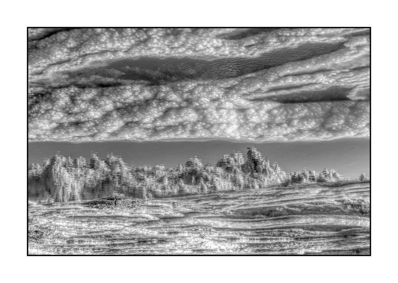 En juxtaposant la majesté des paysages de Dallol avec la simplicité du noir et blanc, je vous invite à un questionnement profond sur la signification et le but de notre monde contemporain, souvent dominé par une quête effrénée d'accumulation de richesses matérielles. Les reflets sur l'eau deviennent métaphores, reflétant notre propre société et son obsession pour la croissance économique au détriment de la préservation de la nature.