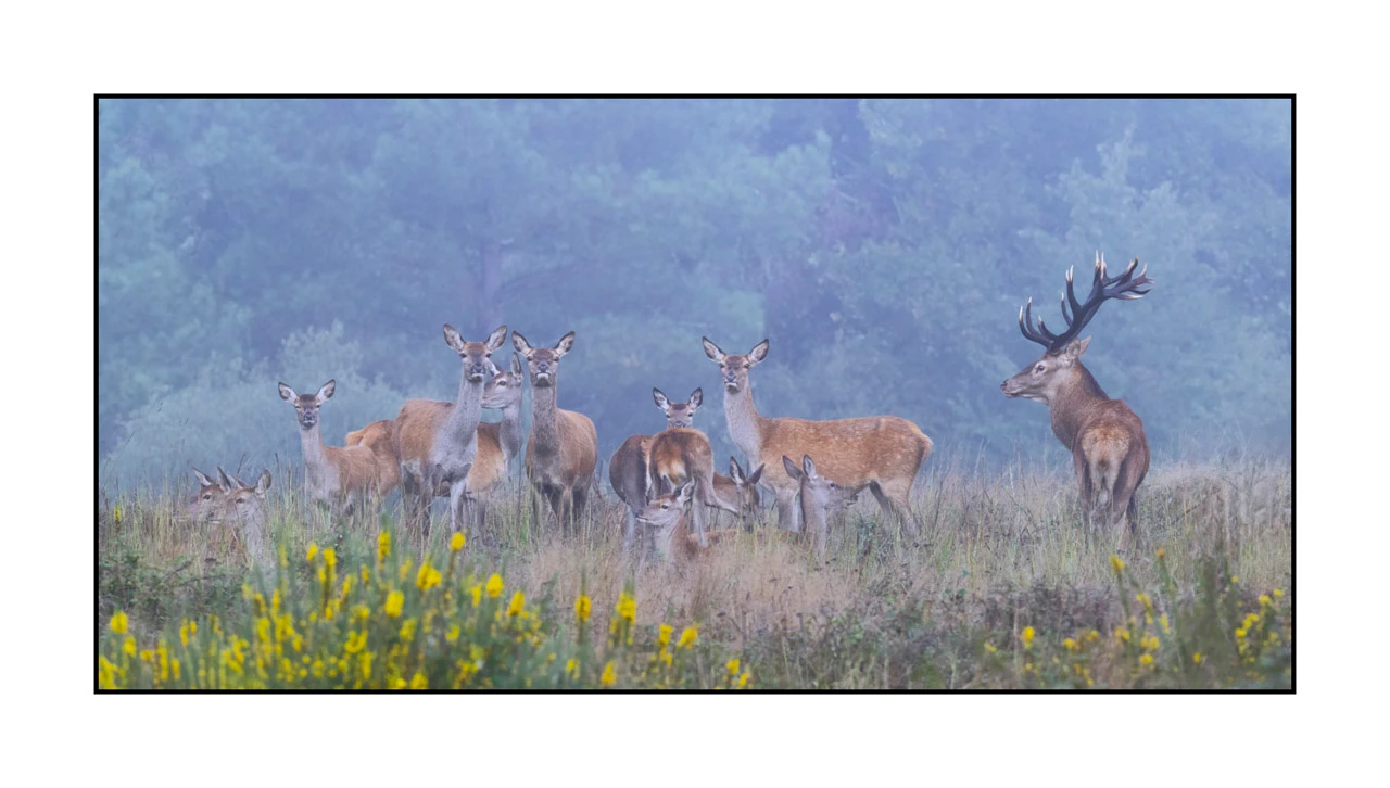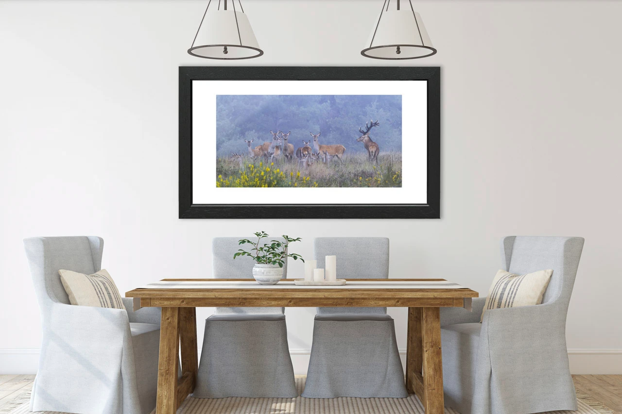 Les murmures du brame du cerf: Finition museum Photo : 86cm x 43cm. Avec cadre : 105cm x 59cm.