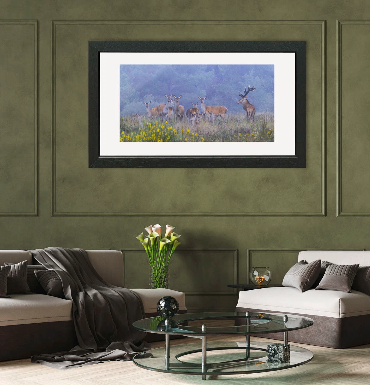 Les murmures du brame du cerf: Finition contemporaine Photo : 91cm x 45cm. Avec cadre : 94,5cm x 48,5cm.