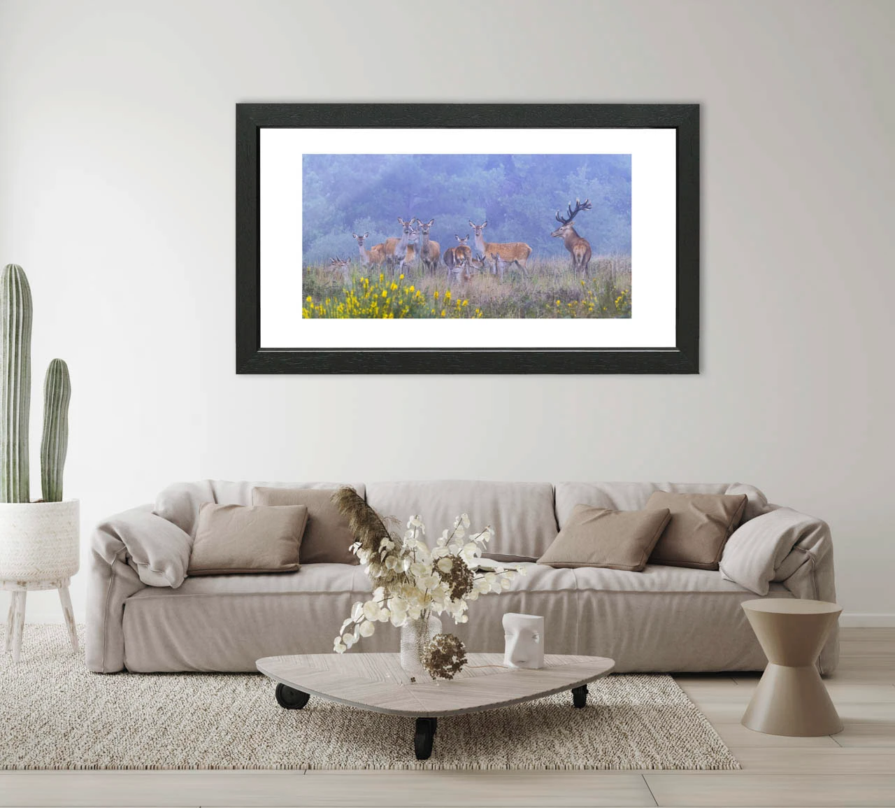 Les murmures du brame du cerf: Finition contemporaine Photo : 86cm x 43cm. Avec cadre : 105cm x 59cm.