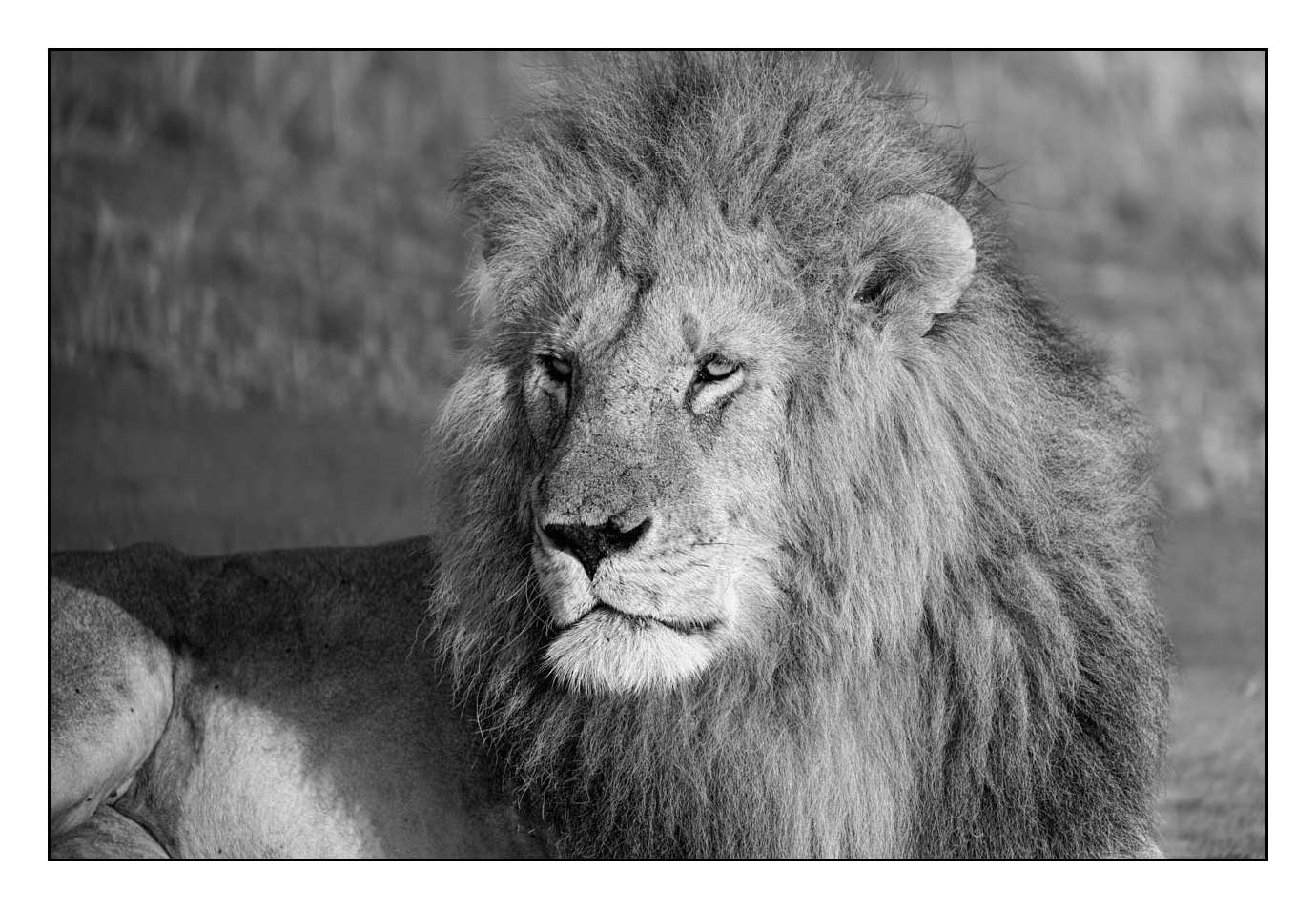 Pour moi le Masaï Mara ne peut être représenté qu’en noir et blanc. Pour aller à l’essentiel et montrer le côté sauvage de cette région, je n’avais pas envie de distraire le spectateur avec des détails inutiles. De plus le noir et blanc est totalement intemporel. Il met parfaitement en valeur les attitudes et les comportements des grands mammifères du parc.