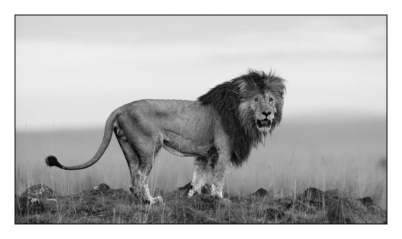 Lion IX: Finition contemporaine Photo : 48cm x 27cm. Avec cadre : 61cm x 40cm.