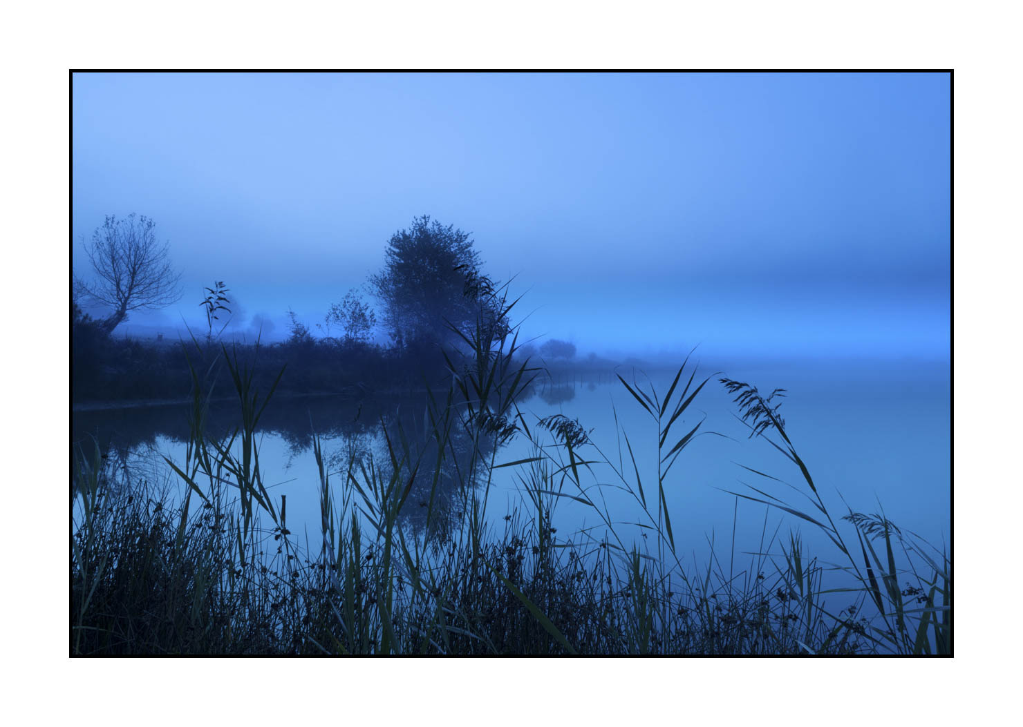 Matin bleu III: Finition contemporaine Photo : 30cm x 20cm. Avec cadre : 33cm x 23,5cm.
