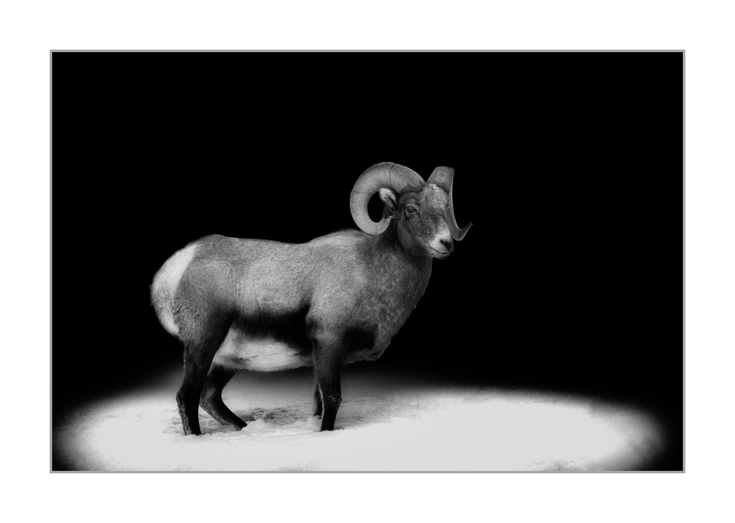 Mouflon du Canada en back to black II: Finition museum Photo : 60cm x 40cm. Avec cadre : 63cm x 43cm.