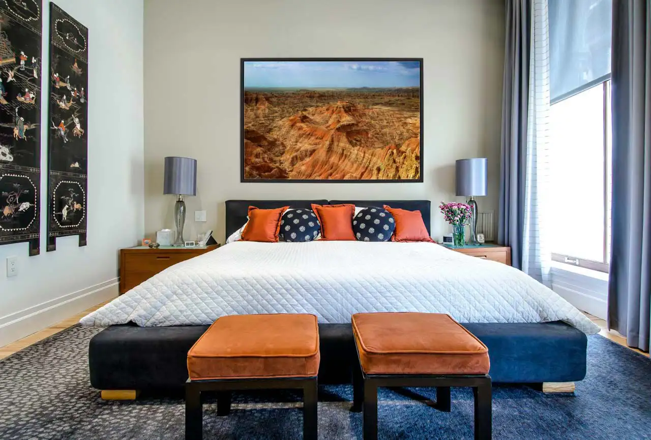 Lueur céleste au-dessus d'un paysage des Badlands dans le Dakota du Sud: Photo : 120cm x 80cm. Avec cadre : 123cm x 83cm.
