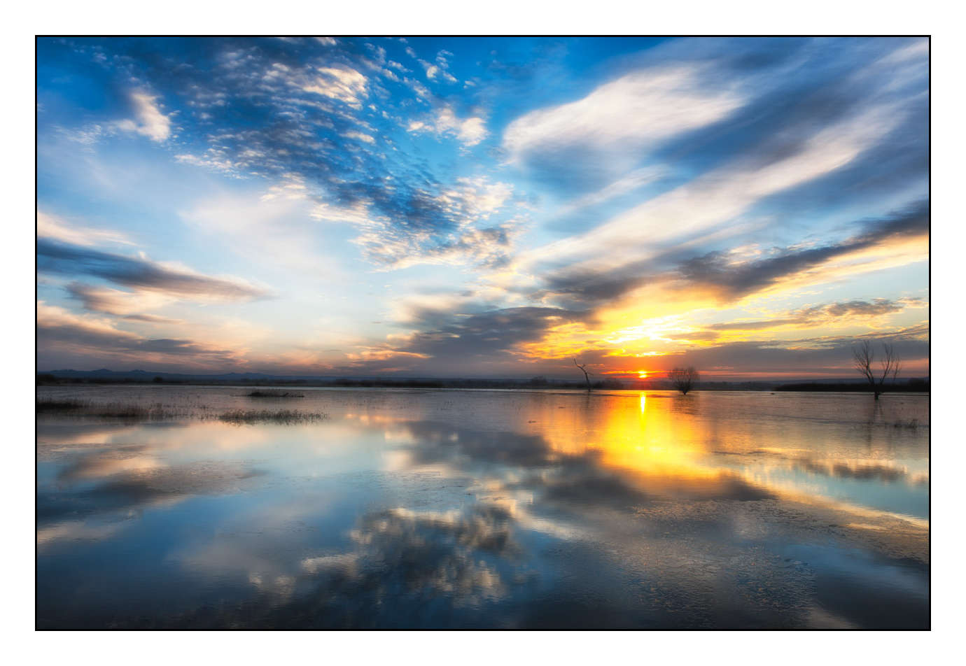 Paysage de Bosque Del Apache II: Finition contemporaine Photo : 60cm x 40cm. Avec cadre : 63cm x 43cm.