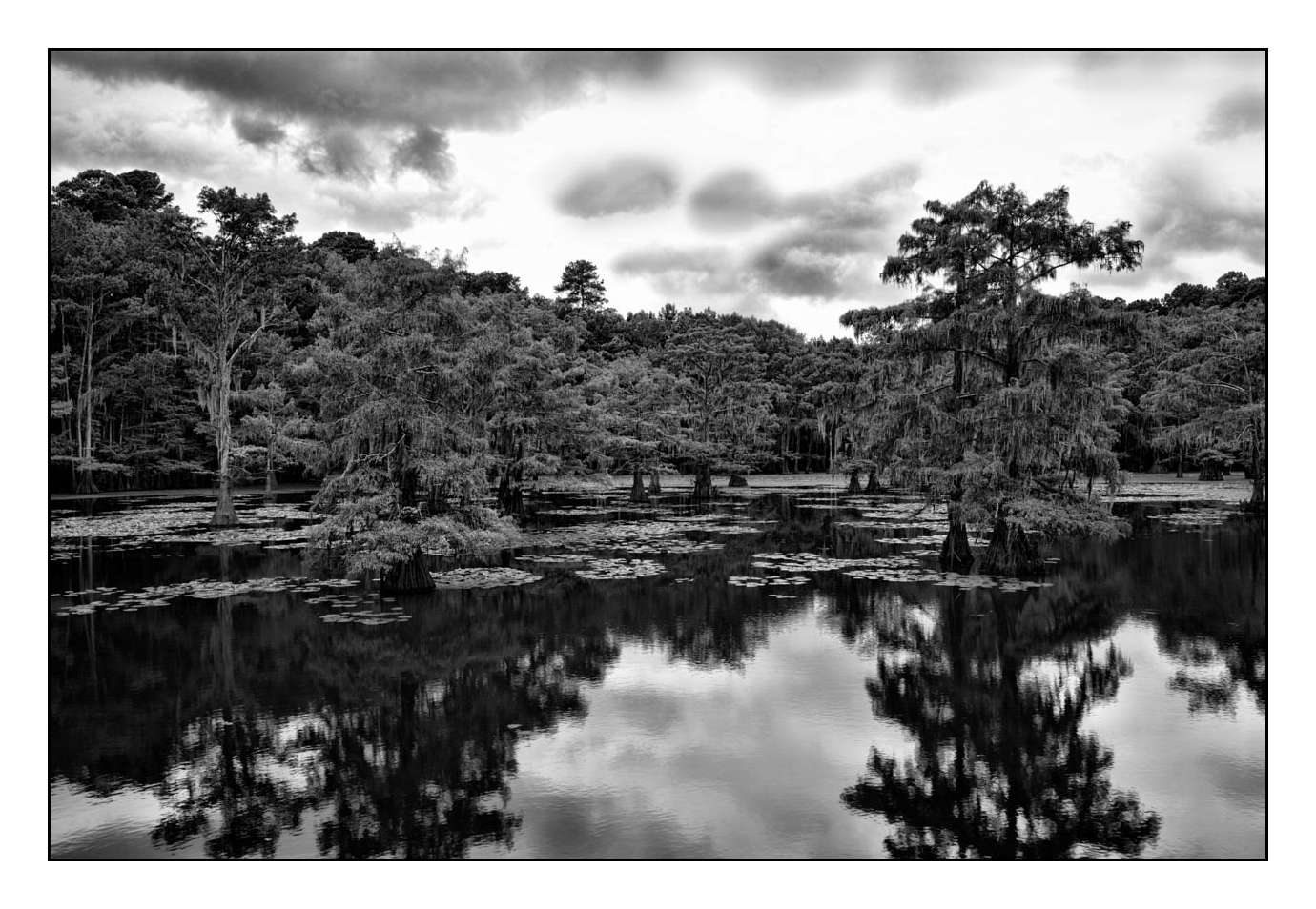 C'est un lac qui dégage beaucoup de mystère à cause de la mousse espagnole qui tombent des branches des cyprès. Les arbres deviennent fantomatiques lorsque la lumière du jour disparaît. Ils donnent l'impression de devenir des géants fabriqués de végétaux qui se déplacent en silence sur l'eau. J'ai toujours l'impression qu'ils disposent de grands bras poilus prêts à m'emmener dans les profondeurs secrètes de la forêt pour y retrouver un chaman qui me révélera les mystères des lieux. C'est vraiment une sensation très étrange.