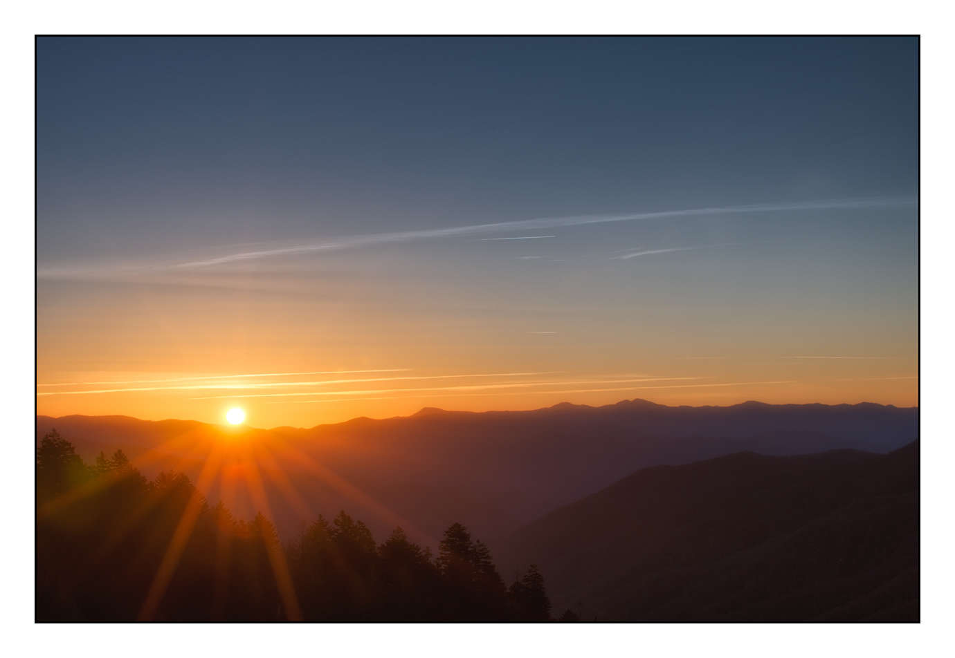 Les Smoky Mountains sont une chaîne de montagne à cheval entre l'état du Tennessee et la Caroline du Nord. Les levers de soleil sont spectaculaires avec des couleurs bleues uniques au monde. Les Smokies sont traversées par des centaines de kilomètres de torrents et de petits cours d'eau.