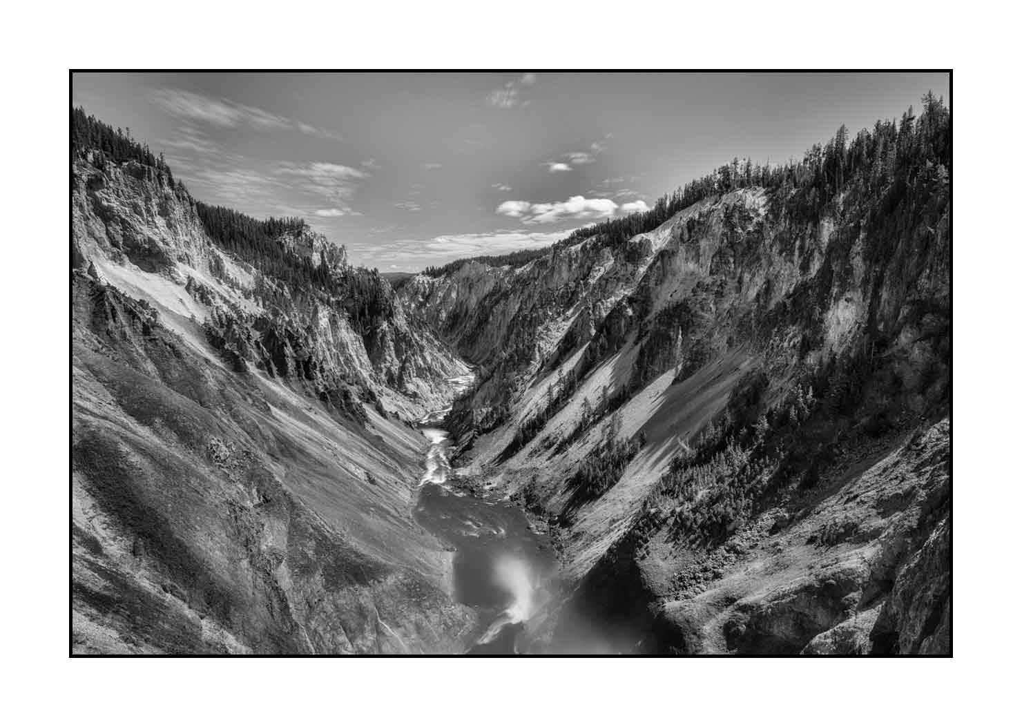 Paysage du Yellowstone dans le Wyoming en noir et blanc XI. Grand Canyon du Yellowstone.: Finition contemporaine Photo : 60cm x 40cm. Avec cadre : 73cm x 53cm.