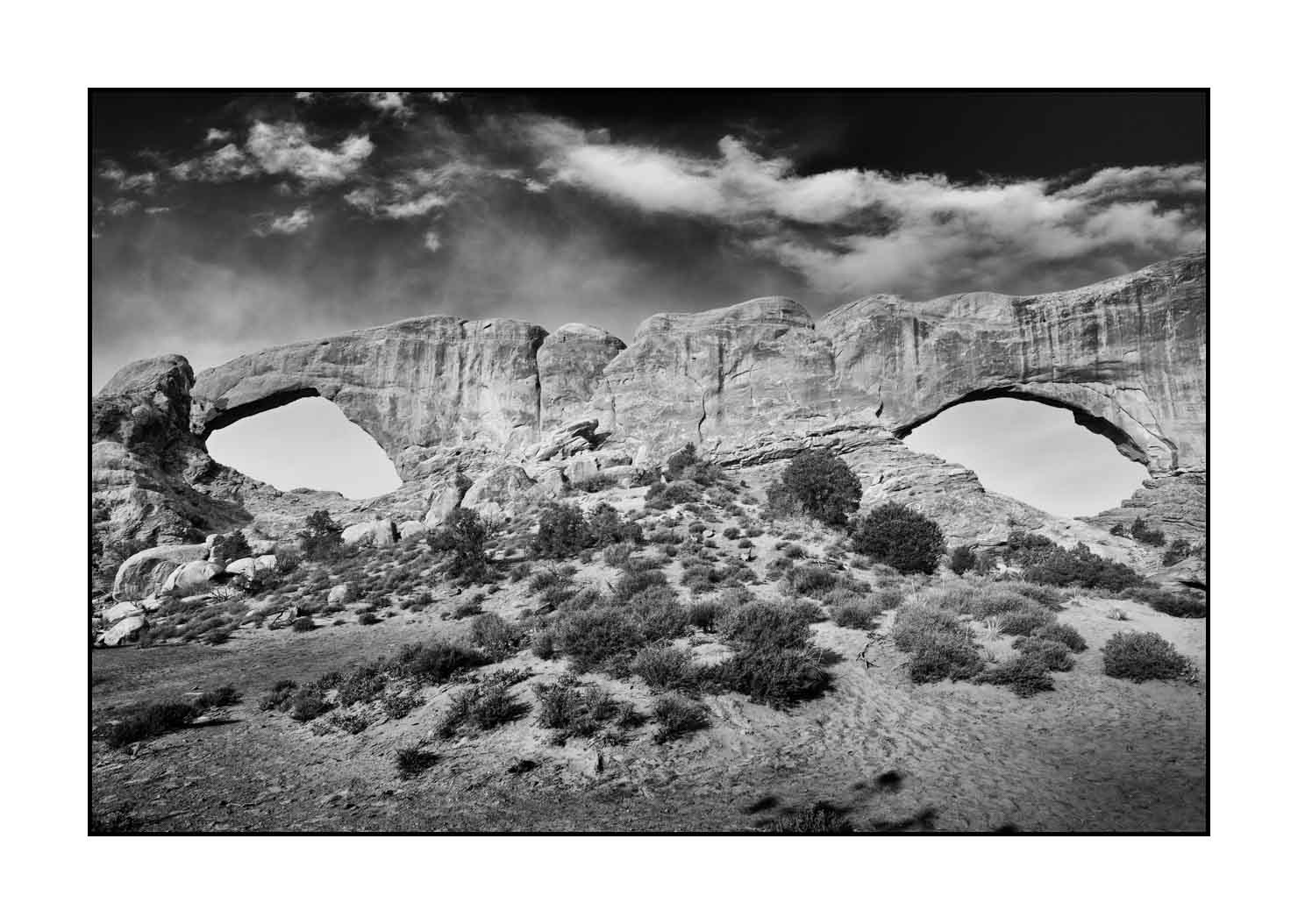 Paysage du Parc National des Arches dans l'Utah en noir et blanc VI: Finition museum Photo : 30cm x 20cm. Avec cadre : 33cm x 23,5cm.