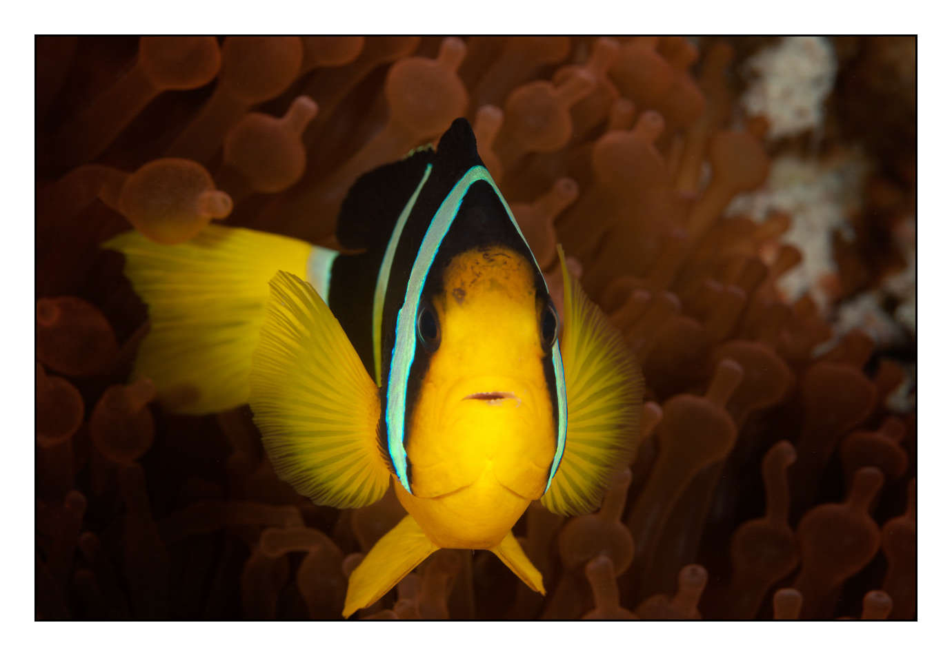 Les poissons clowns sont des sujets typiques et peu de mes confrères s’y attardent vraiment en les considérant comme communs. Pourtant ce sont des sujets fascinants qui méritent d’être bien mis en valeur. Ils me donnent toujours l’impression de jouer à cache-cache je les prends en photo.