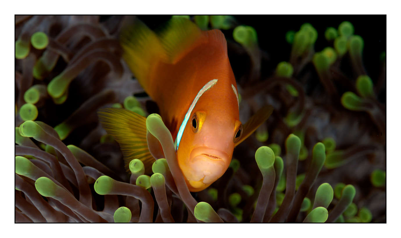 Les poissons clowns sont des sujets typiques et peu de mes confrères s’y attardent vraiment en les considérant comme communs. Pourtant ce sont des sujets fascinants qui méritent d’être bien mis en valeur. Ils me donnent toujours l’impression de jouer à cache-cache je les prends en photo.