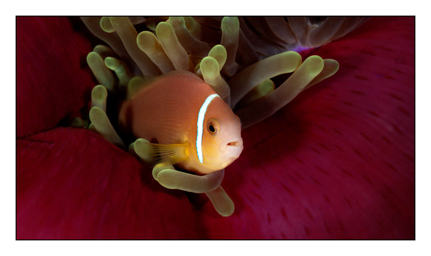Les poissons clowns sont des sujets typiques et peu de mes confrères s’y attardent vraiment en les considérant comme communs. Pourtant ce sont des sujets fascinants qui méritent d’être bien mis en valeur. Ils me donnent toujours l’impression de jouer à cache-cache je les prends en photo.