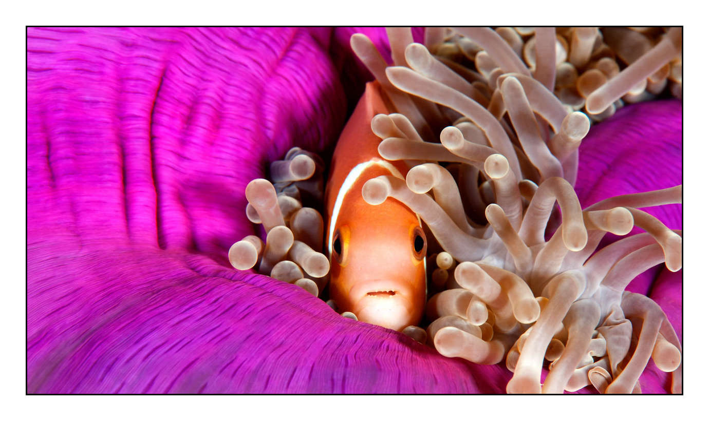 Les poissons clowns sont des sujets typiques et peu de mes confrères s’y attardent vraiment en les considérant comme communs. Pourtant ce sont des sujets fascinants qui méritent d’être bien mis en valeur. Ils me donnent toujours l’impression de jouer à cache-cache je les prends en photo.