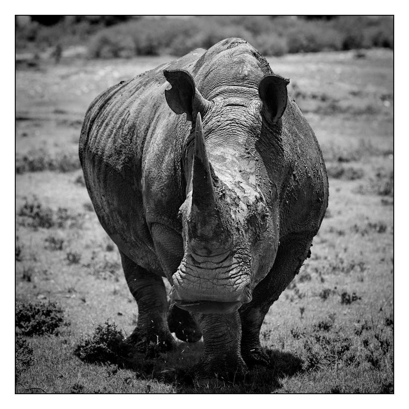 Rhinocéros blanc I: Finition museum Photo : 40cm x 40cm. Avec cadre : 53cm x 53cm.