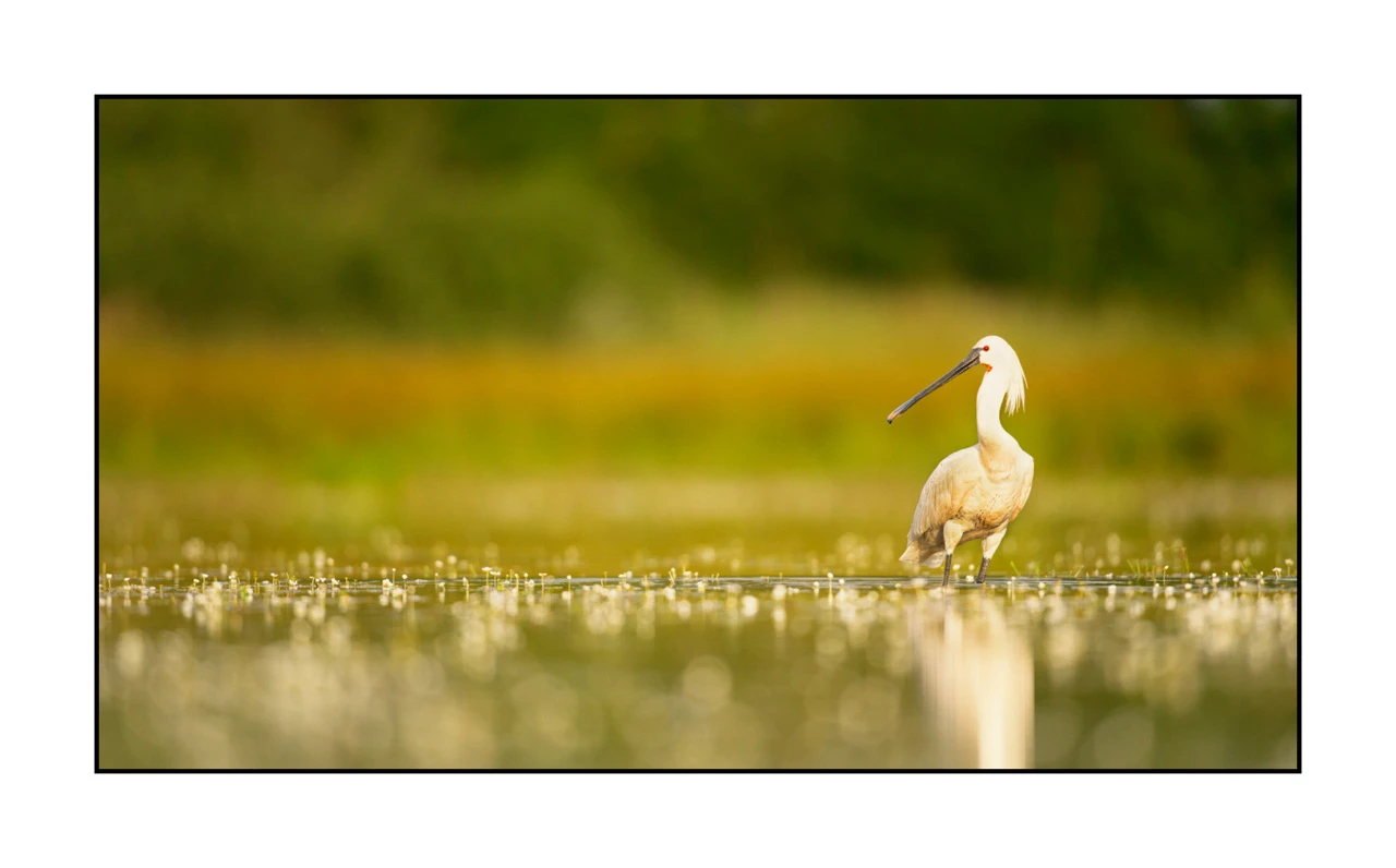 Lorsque j'ai créé cette photo d'un oiseau dans la Dombes en France, j'ai souhaité évoquer un doux dialogue entre immobilité et liberté, où l'harmonie paisible de la nature rencontre le mouvement gracieux de la faune sauvage.