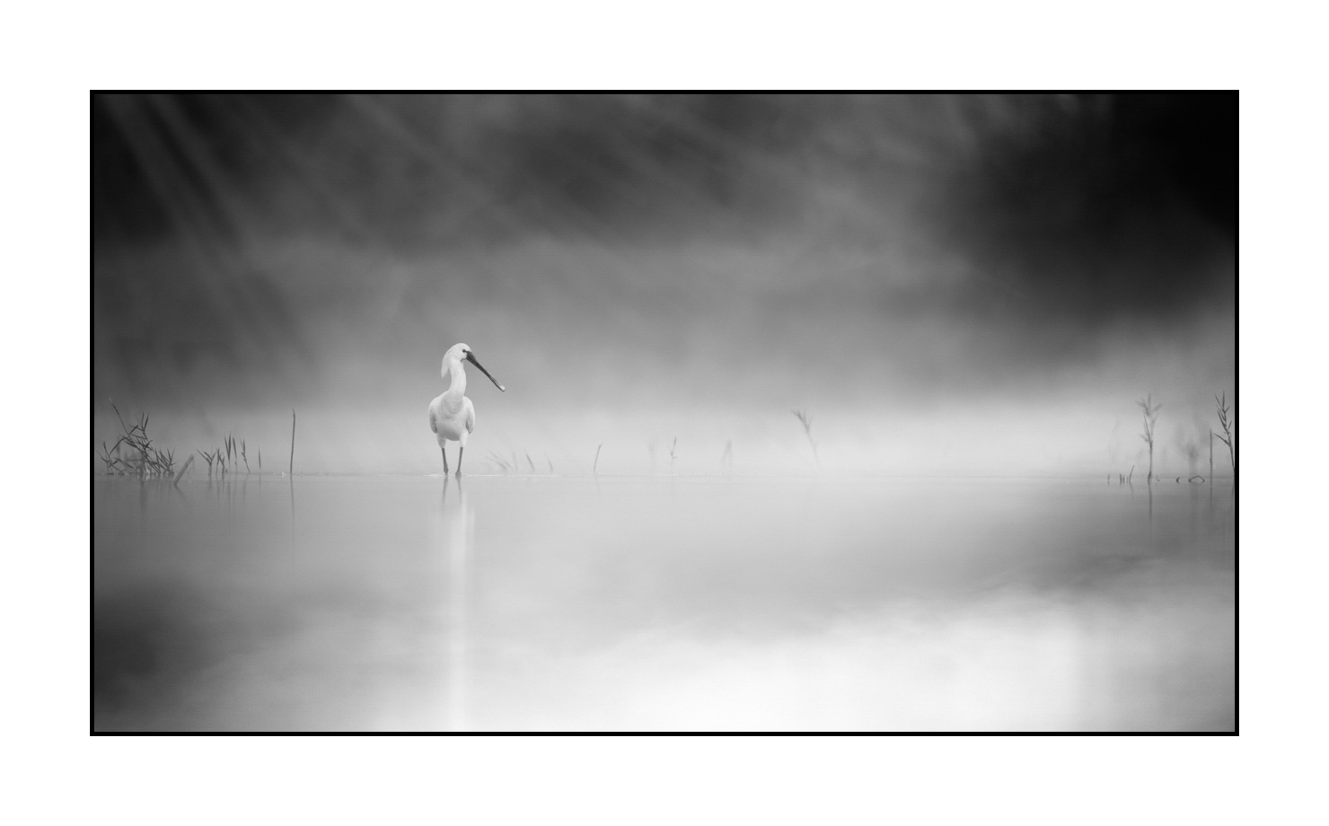 La collection « Oiseaux des zones humides dans la brume » met en avant la grâce mystérieuse. C'est à l'aube que l'on peut rencontrer des créatures étranges marchant dans la lumière. Comme vous le voyez, toutes ces photos ont été prises le matin. J'ai voulu montrer les oiseaux qui chassent tôt le matin, lorsque personne ne les remarque ou ne les dérange. C'est un moment privilégié pour eux qui met en valeur leur beauté mystérieuse.